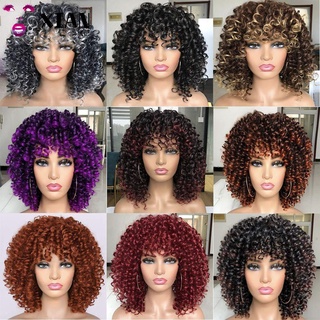 Afro Keriting Curly Manusia Rambut Palsu Dengan Brazil Penuh Manusia Rambut Palsu Rambut Ikal Yang Wanita